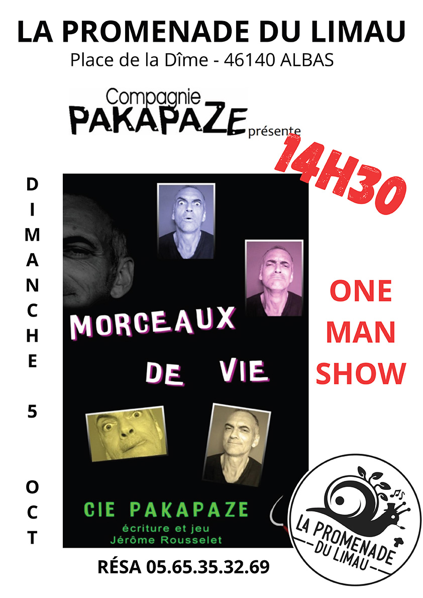 La Promenade du Limau vous donne rendez-vous le dimanche 5 octobre à 14h30 place de la Dîme pour un one man show de la compagnie