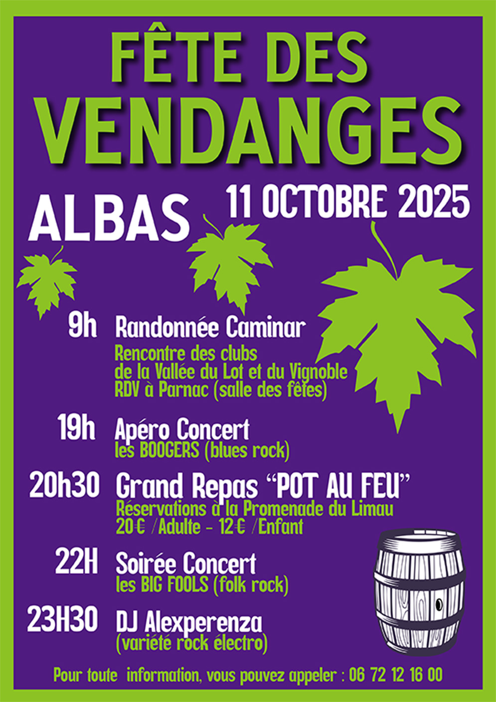 La fête des vendanges revient à Albas le 11 octobre ! 9h – Randonnée Caminar : Rencontre des clubs de la Vallée du Lot et