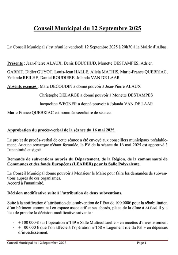 • PV du 12/09/25